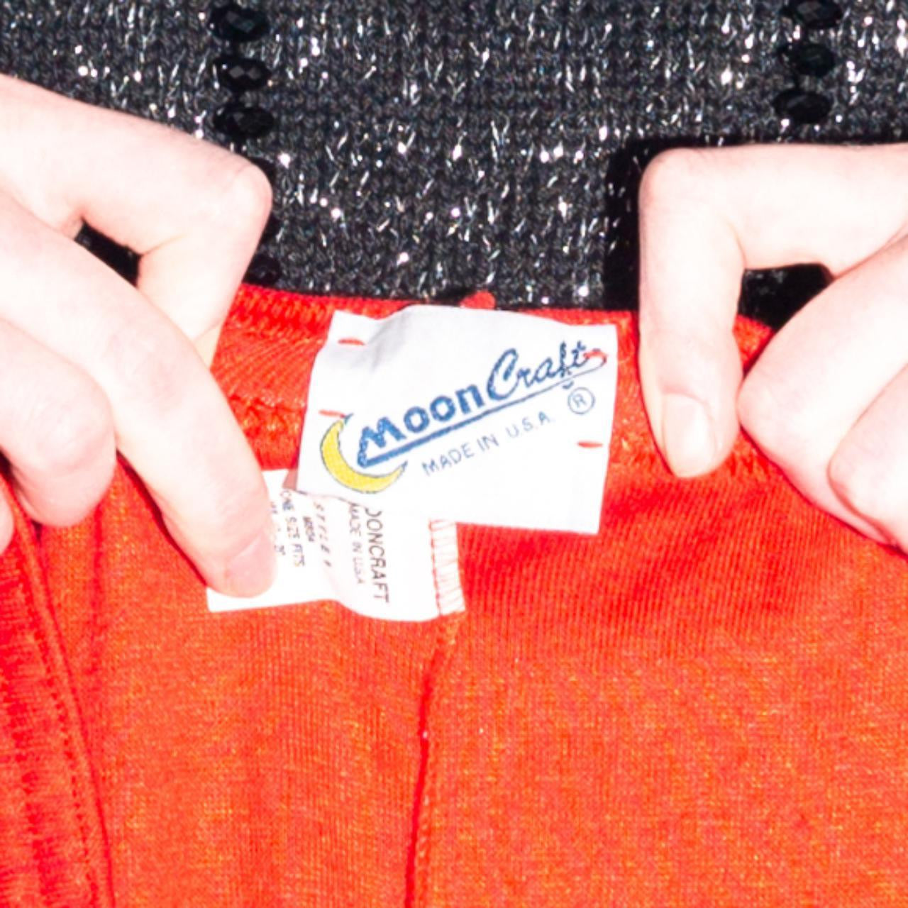 Vintage 80s red stirrup leggings with elastic waist. Made in USA. Stirrups hold pants in place while wearing boots but can also be worn with sneakers for a visible statement.