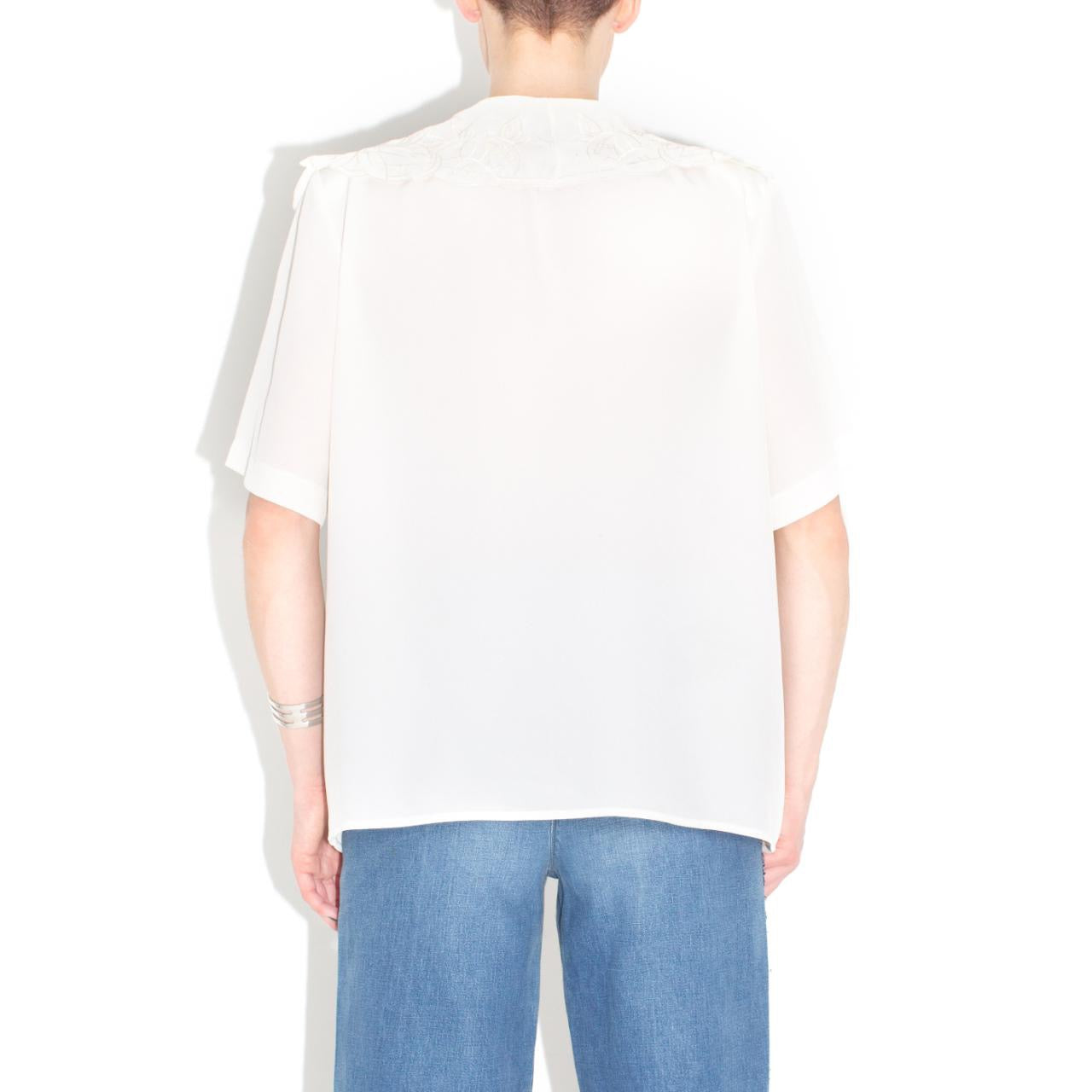 White button down blouse with one of the of the best oversized lace collars I've seen- perfect for layering for that haunted Pilgrim schoolchild ghost look. Perfect fit for all genders and body types. Layer underneath an all black outfit for a really Victorian goth lewk.